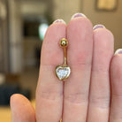 Romantic and timeless, this heart-shaped belly button ring is designed to sparkle with every glance. Crafted from surgical steel and finished with a rich 14k gold plating, it combines everyday strength with a luxurious glow. At the center sits a brilliant cubic zirconia stone, adding just the right amount of sparkle to this playful yet elegant design.