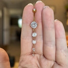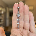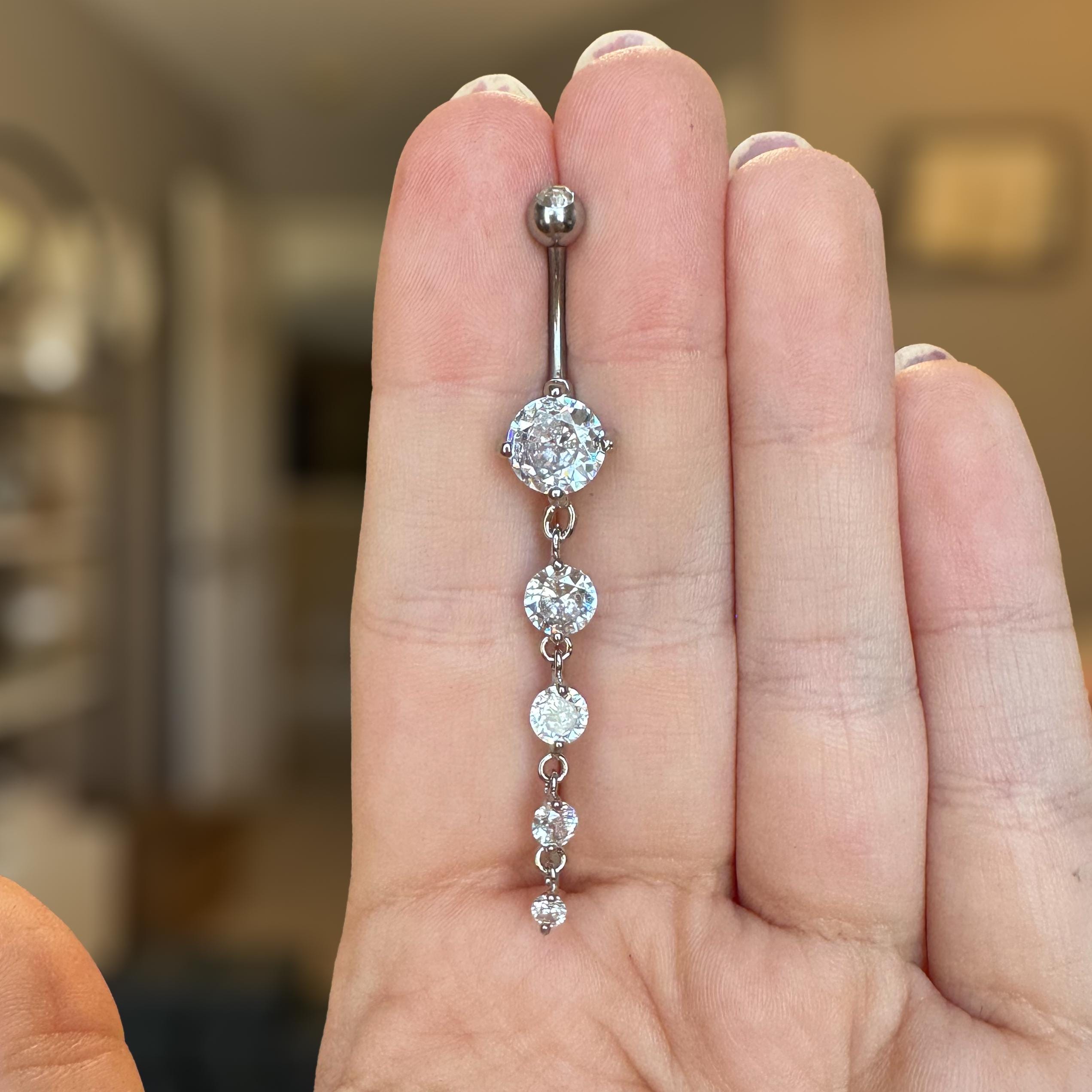 Sleek, modern, and full of sparkle, this graduated CZ belly button ring is a timeless choice for any jewelry lover. Crafted from surgical steel and finished in your choice of classic silver or radiant gold, it offers both beauty and everyday strength.