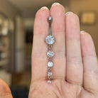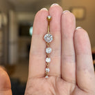 Add this five-stone CZ belly button ring to your collection for a touch of elegant shimmer in gold or silver.
