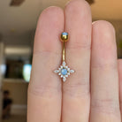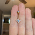 Shine like the night sky with this dazzling starburst belly button ring, designed with radiant CZ crystals and dreamy faux opals.
