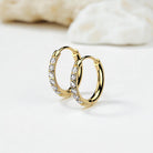 A touch of light, made wearable. These dainty gold PVD hoops feature a front-facing row of cubic zirconia stones for just the right amount of sparkle. Designed to catch the light with every turn of your head, Lumi Hoops are minimal yet refined — the kind of piece you’ll reach for every day, and still feel special every time.