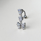 The combination of heart-shaped CZs and the dainty bow creates a delightful and eye-catching look, making it an ideal choice for those who love intricate, yet minimalist designs for their navel piercing.