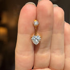 Radiant and timeless, this titanium heart belly button ring strikes the perfect balance between sentiment and sophistication. A brilliant heart-cut Moissanite sparkles at the center, complemented by a round Moissanite top for a touch of symmetry and shine.