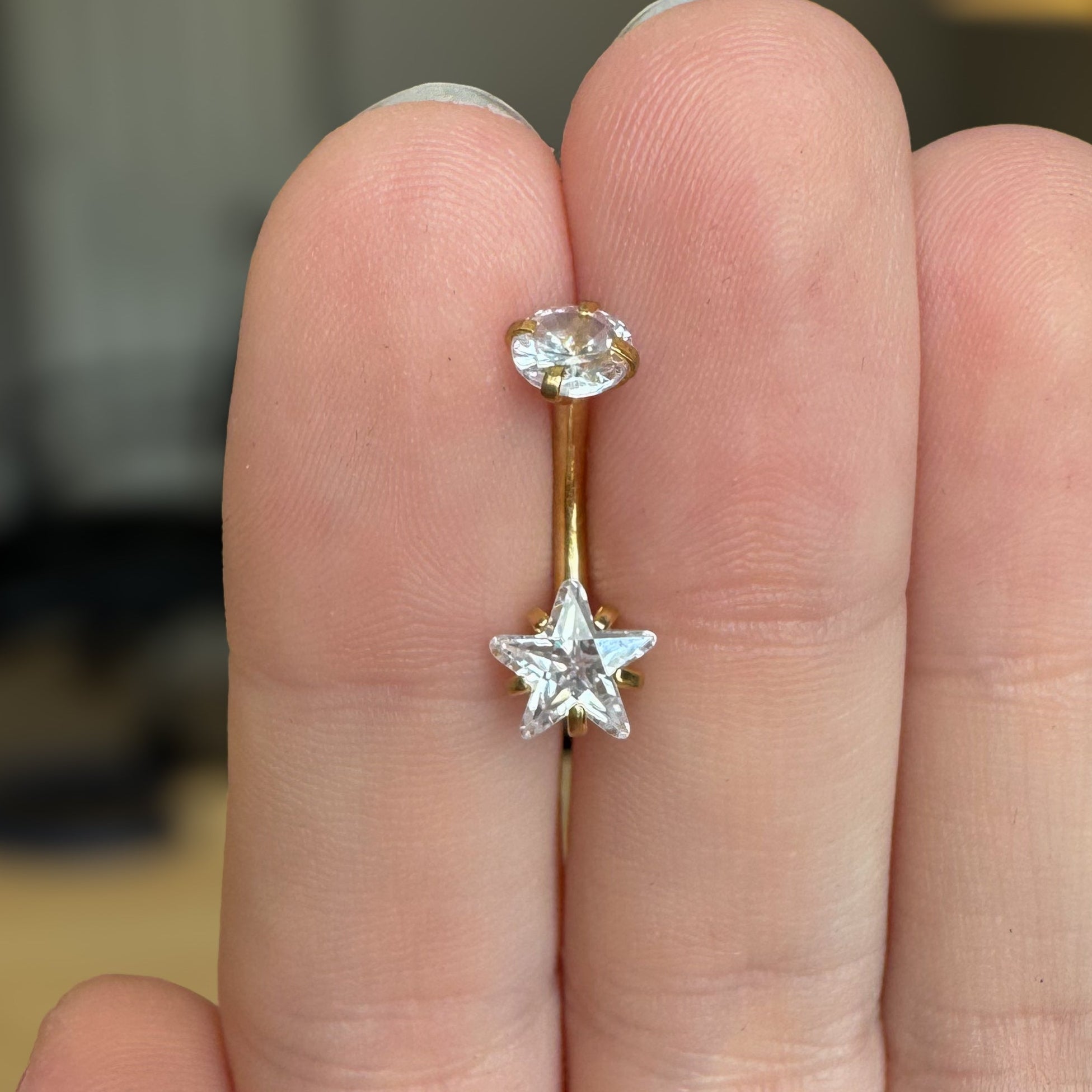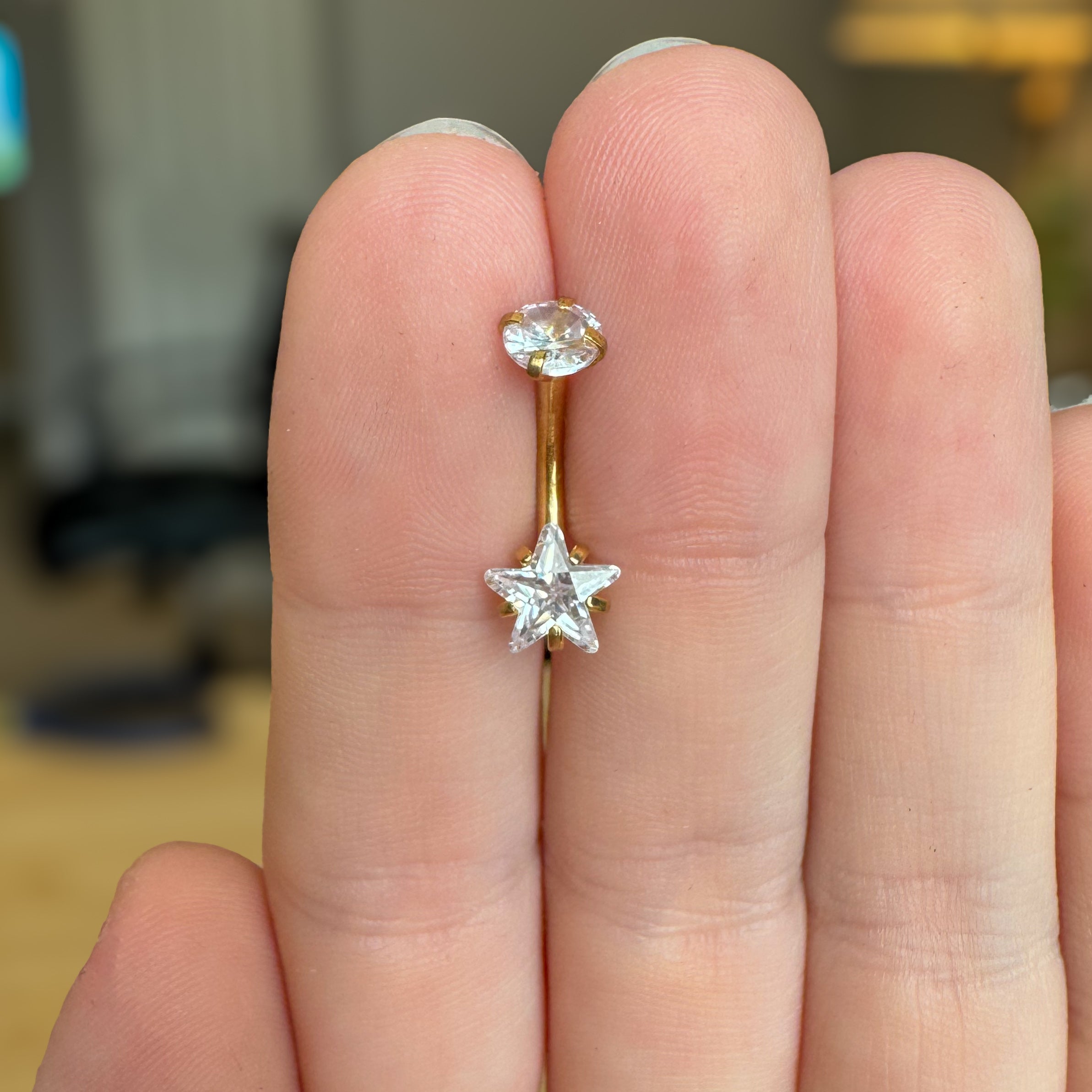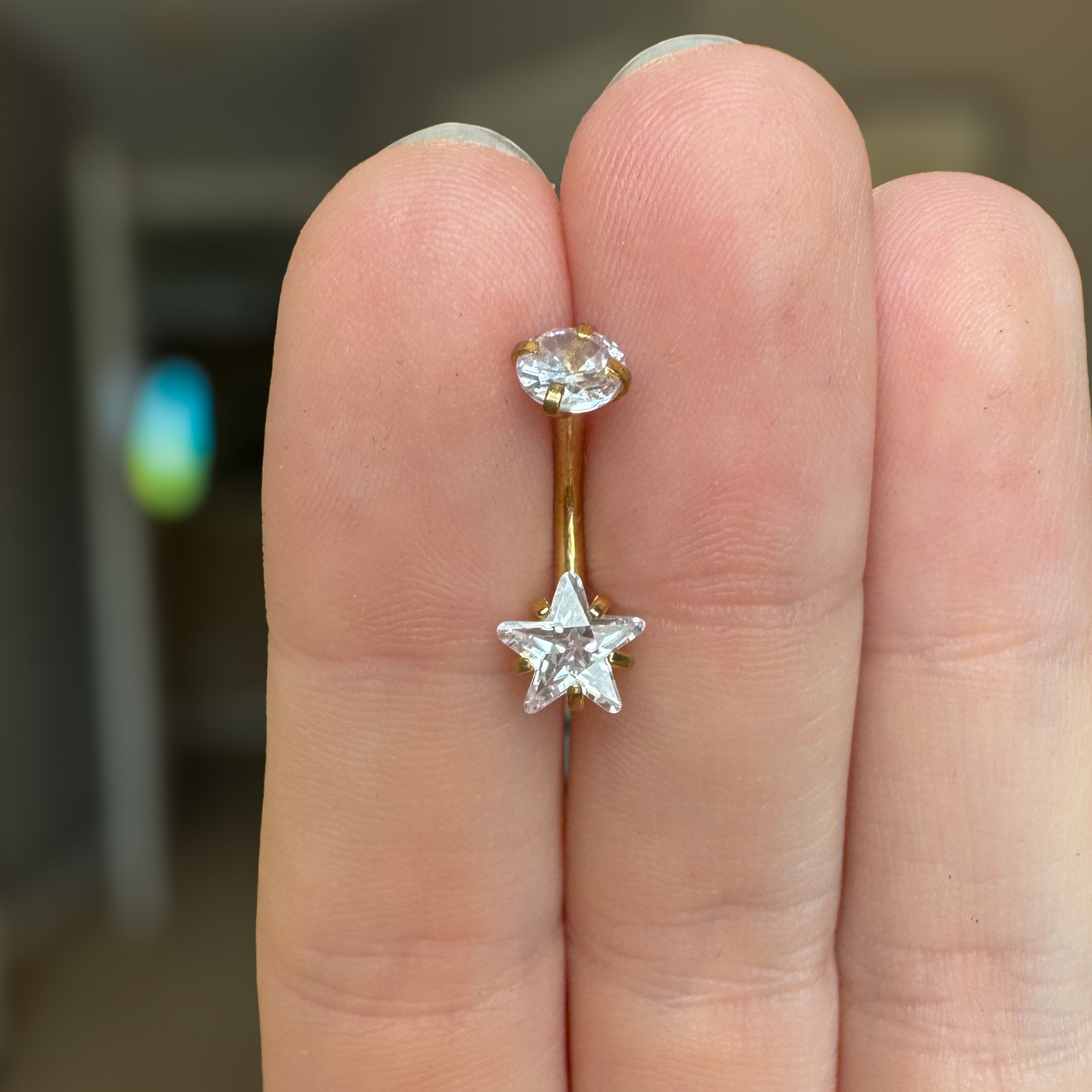 Indulge in the timeless allure of this navel jewelry as you adorn yourself with our exquisite star belly button piercing. Elevate your look, express your individuality, and shine bright like the star you are.