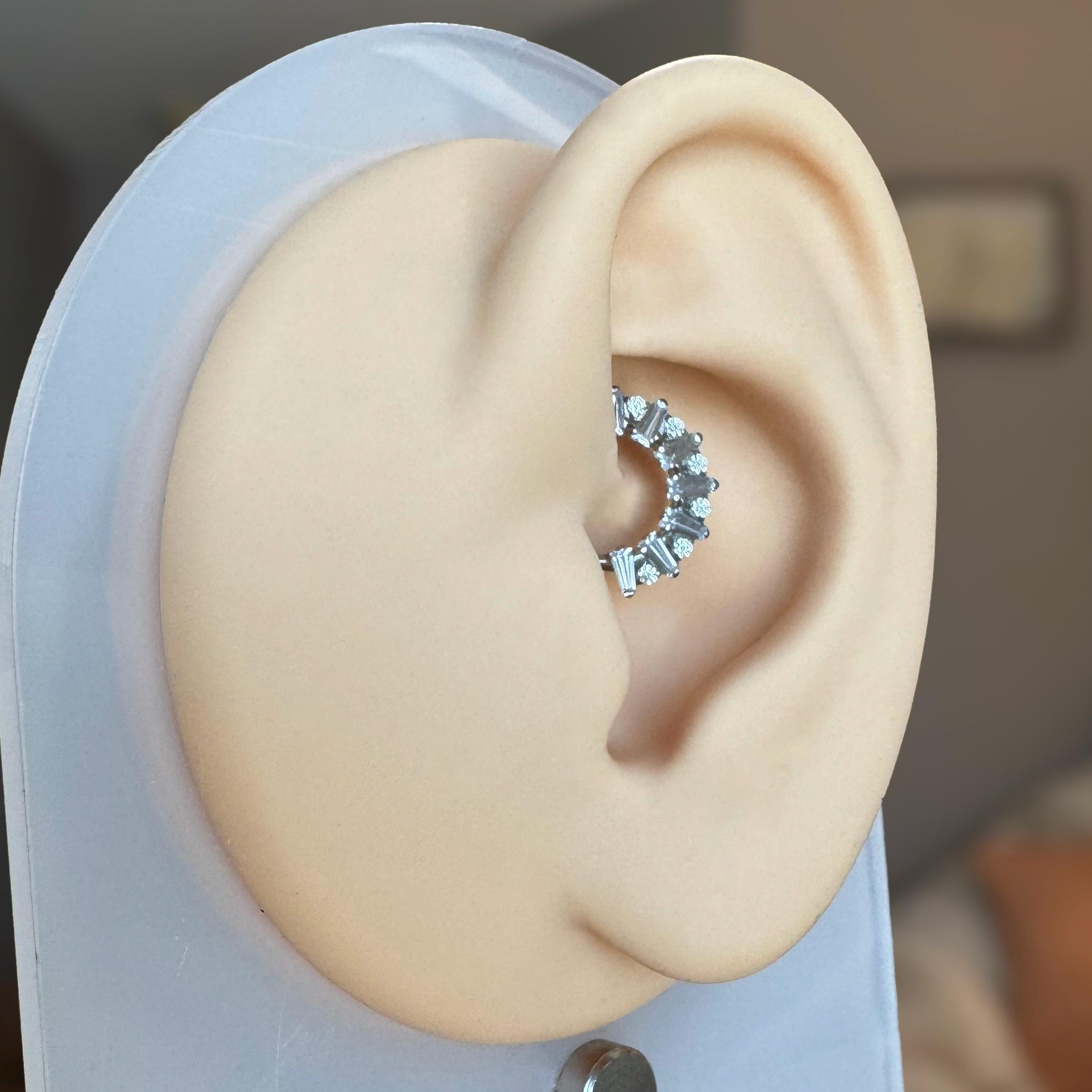 Sleek, enduring, and endlessly elegant—this collection of titanium daith earrings pairs strength with elevated design. Made to last. Styled to stand out.