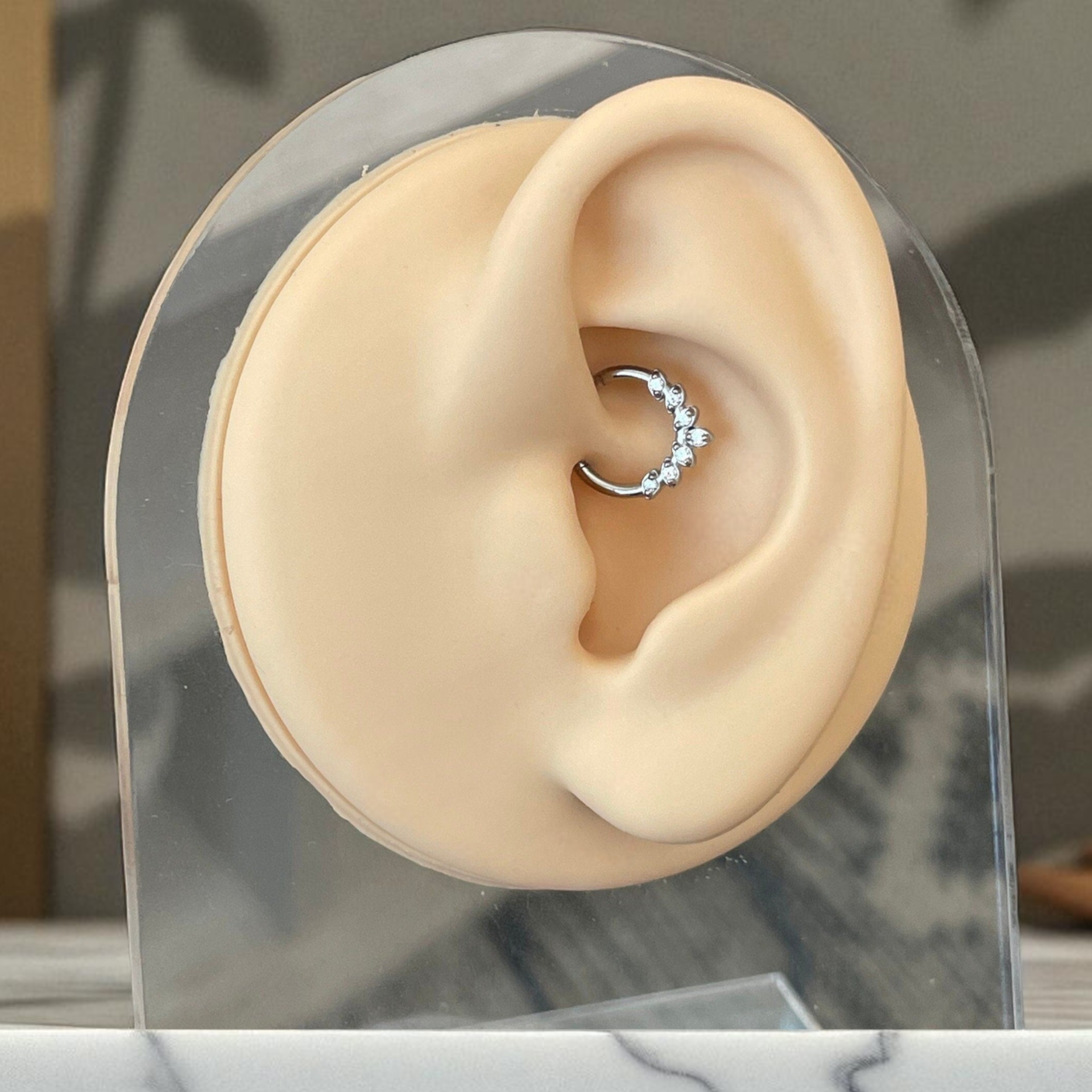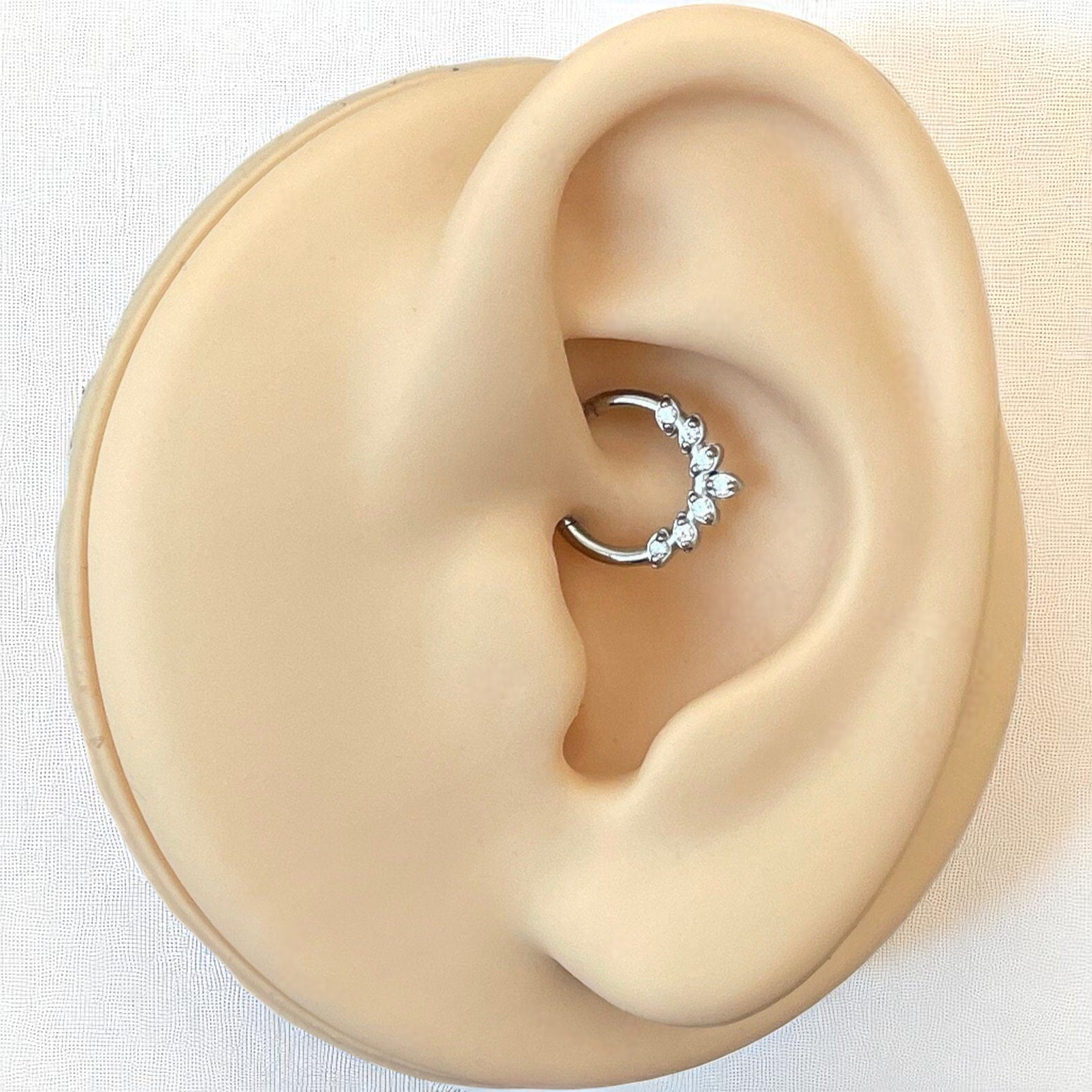This clicker piercing is made of high quality surgical steel with beautiful CZ clear crystals. Works for septum clicker, daith earring, rook jewelry, tragus ring, or cartilage hoop.