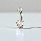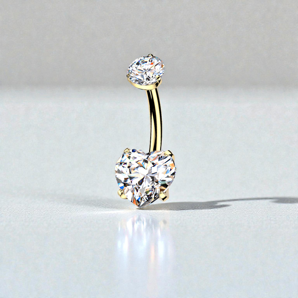 Romantic with a polished edge, this internally threaded belly button ring features a radiant prong-set heart-shaped CZ as its centerpiece, delivering timeless sparkle with a soft, feminine silhouette. The warm glow of the 24K gold PVD finish elevates the design, giving it a rich, high-end look that feels both modern and classic.