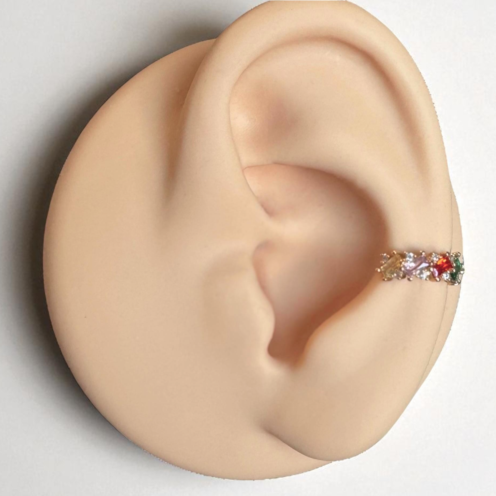 Whether you're curating a colorful ear party or searching for a fun and thoughtful gift for a piercing lover, this baguette-cut CZ conch earring is the perfect blend of bold color and refined style. Make your ear stack unforgettable—order yours today and shine in full color!