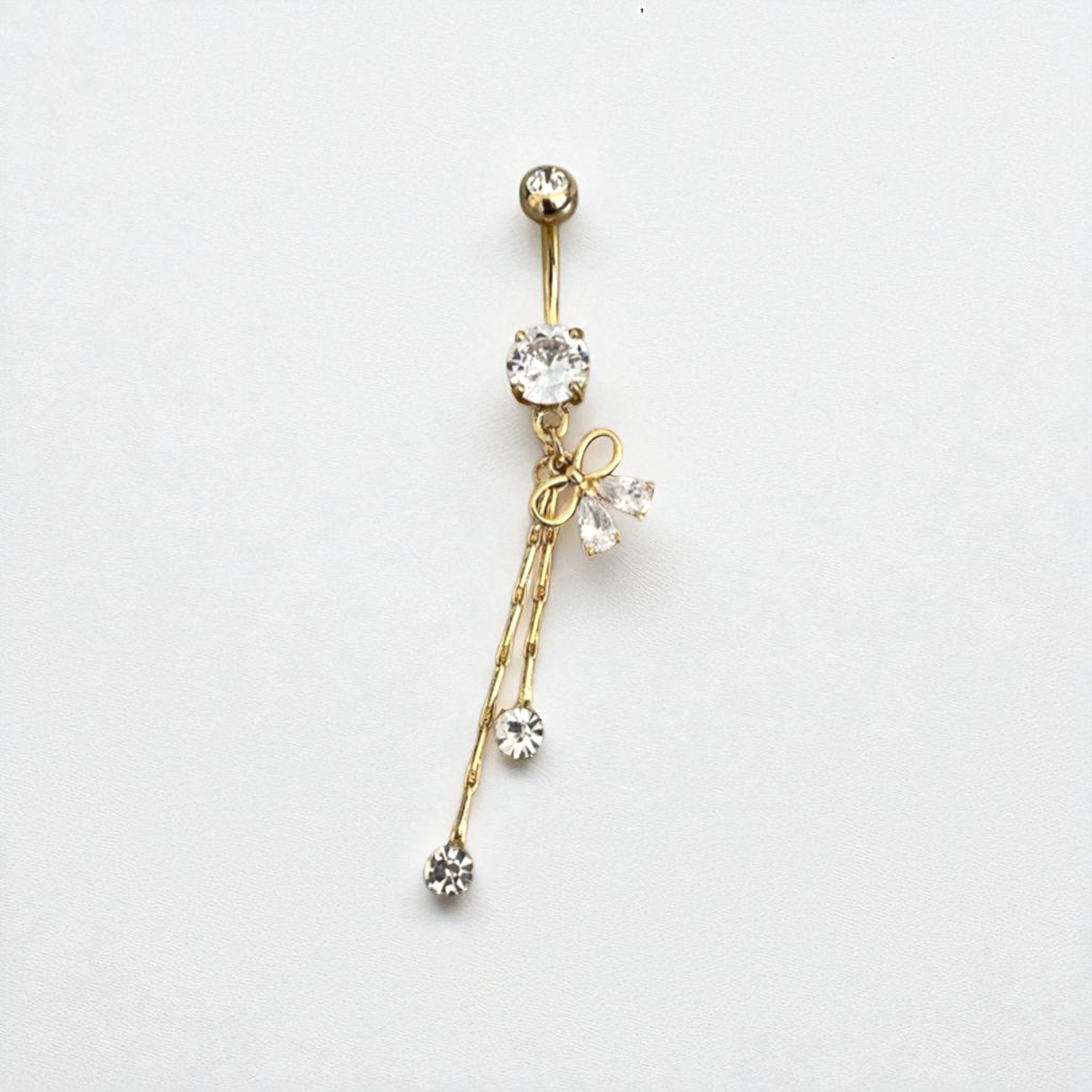 Whether you're shopping for cute and dainty belly jewelry or looking for a standout statement piece, this chain bow belly ring is the perfect mix of glam and charm.