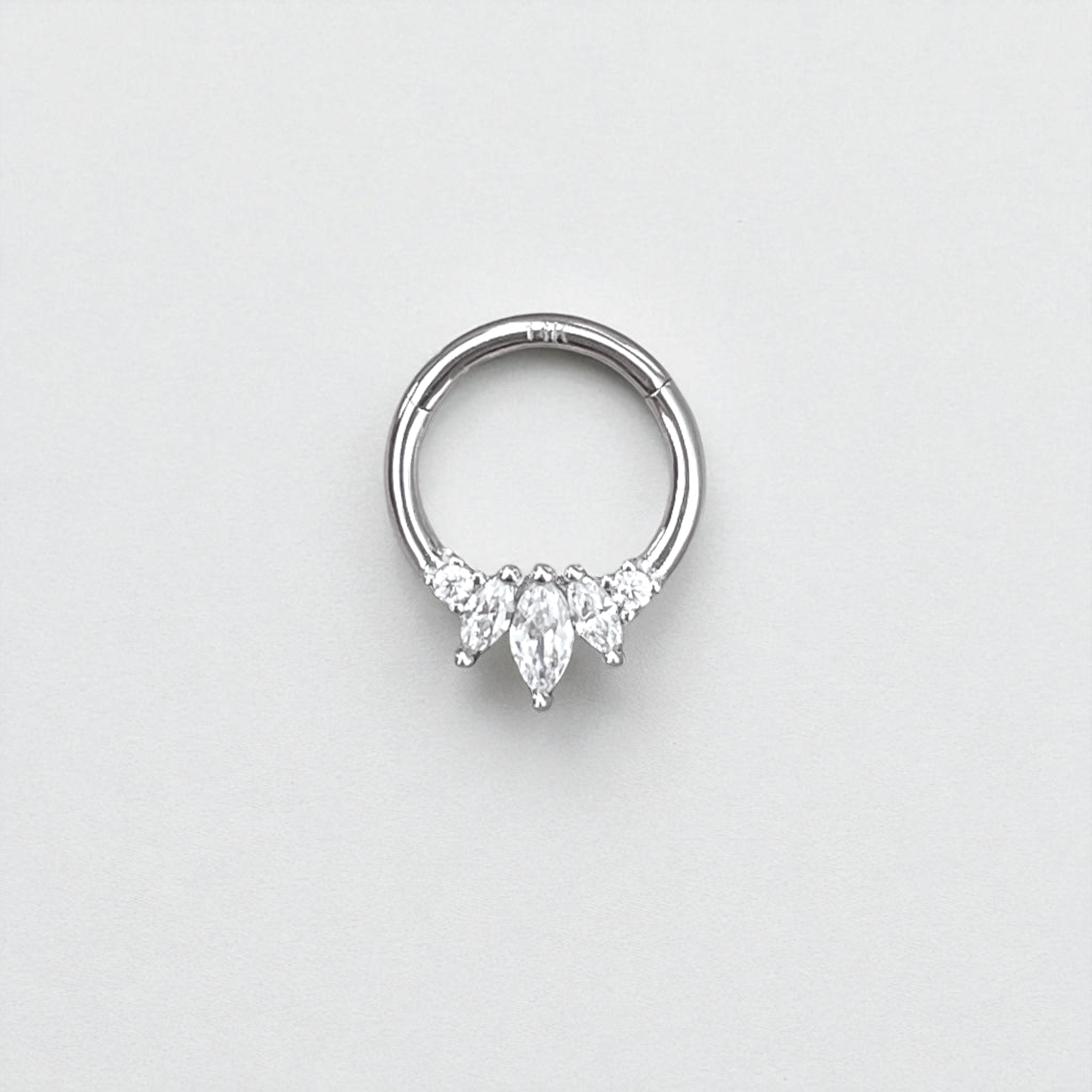 This daith earring is crafted with 14K solid gold and CZ crystals for a minimalist, yet eye-catching sparkle. Easy to "click" into place for secure piercing. Make a statement with this dainty yet bold body jewelry.
