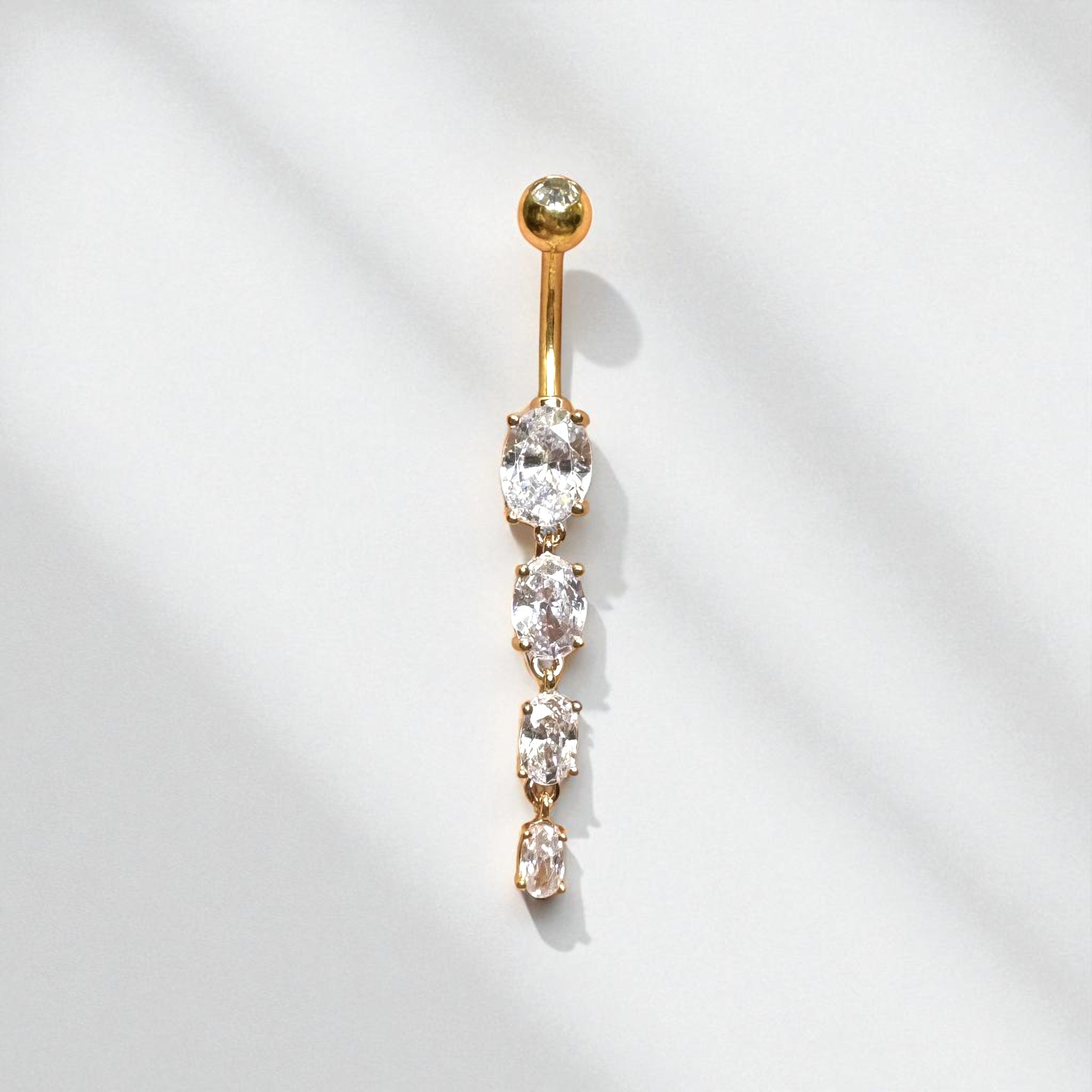 Whether you're stepping out for a night on the town or adding a hint of sparkle to your everyday ensemble, this long, dangly crystal belly button ring is the perfect accessory to express your unique style and personality. Elevate your look and make a statement with this timeless piece of jewelry!