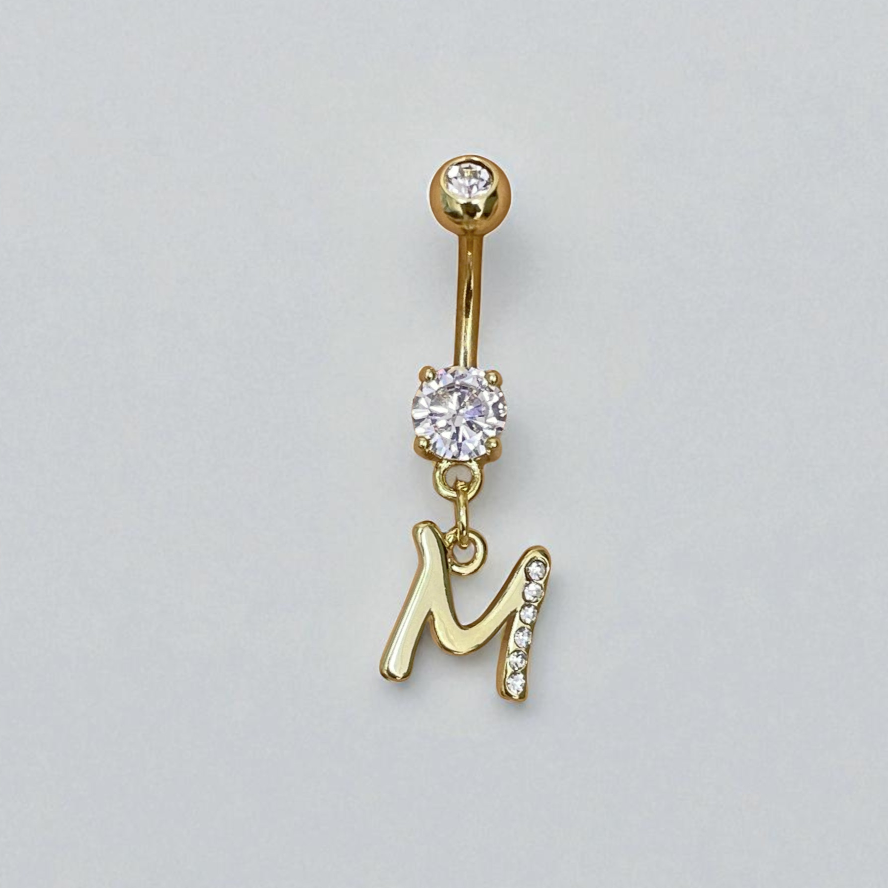 Whether you're repping your own initial, someone you love, or simply love a touch of gold and glam, this belly button piercing is both meaningful and chic. Available in gold with letters A, B, C, D, E, F, G, H, J, K, L, M, N, P, R, S, or T.