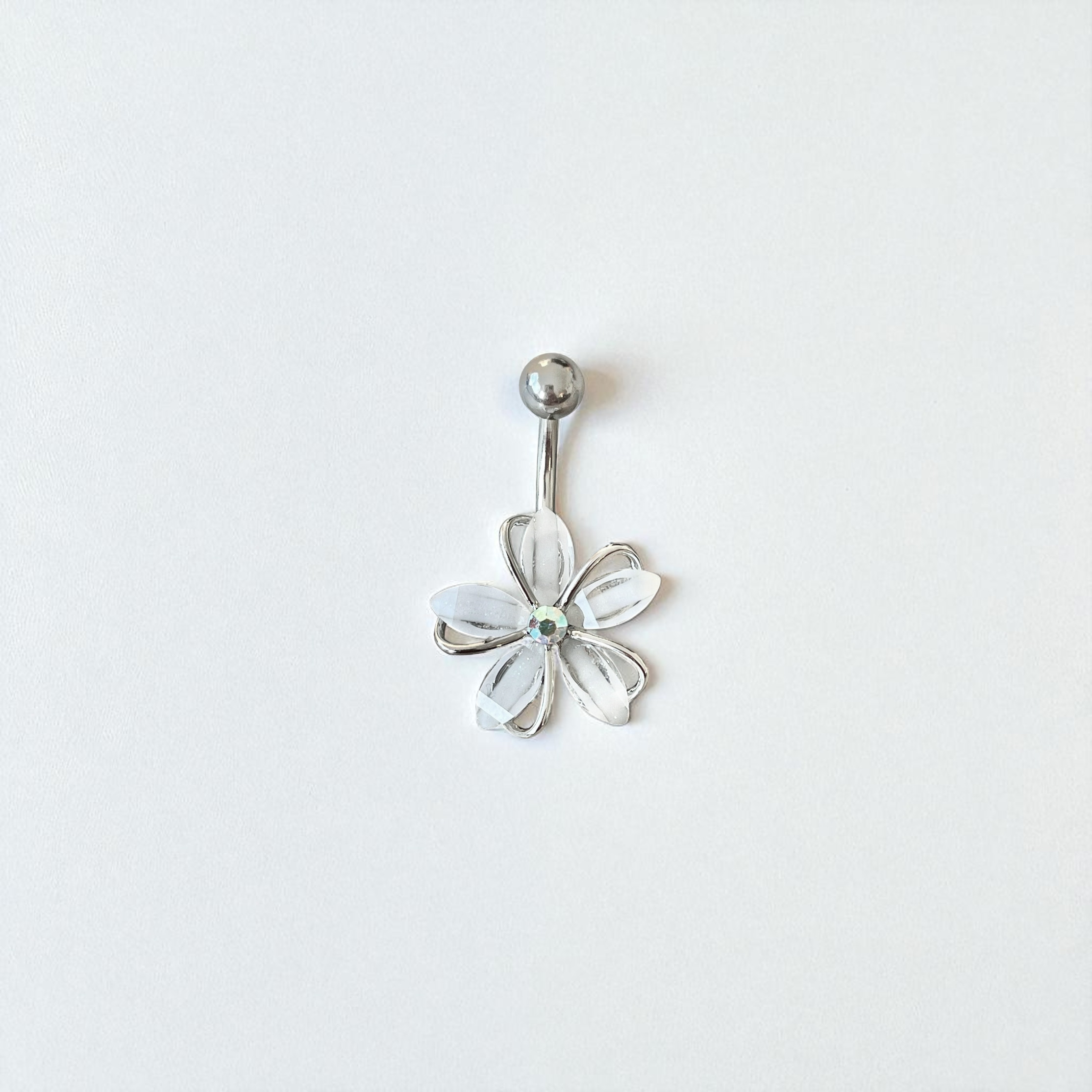 Turn heads with this minimalist floral belly button piercing, designed to add a soft yet stunning touch to your body jewelry lineup.