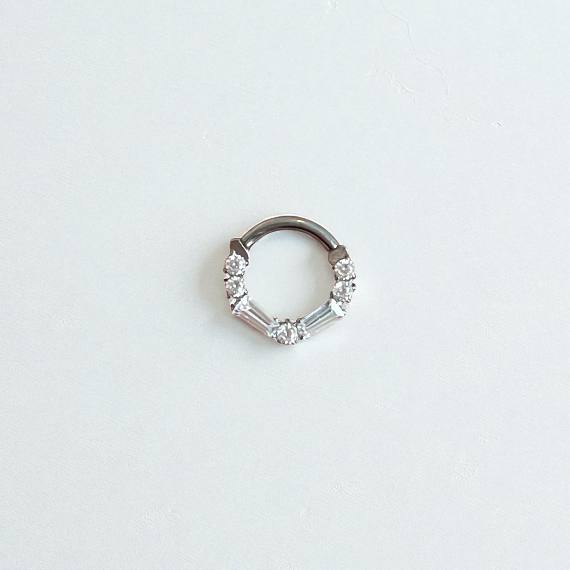 This septum piercing is made of implant grade titanium. Piercing is a septum clicker - "clicks" into place. Drop jaws with this body jewelry!