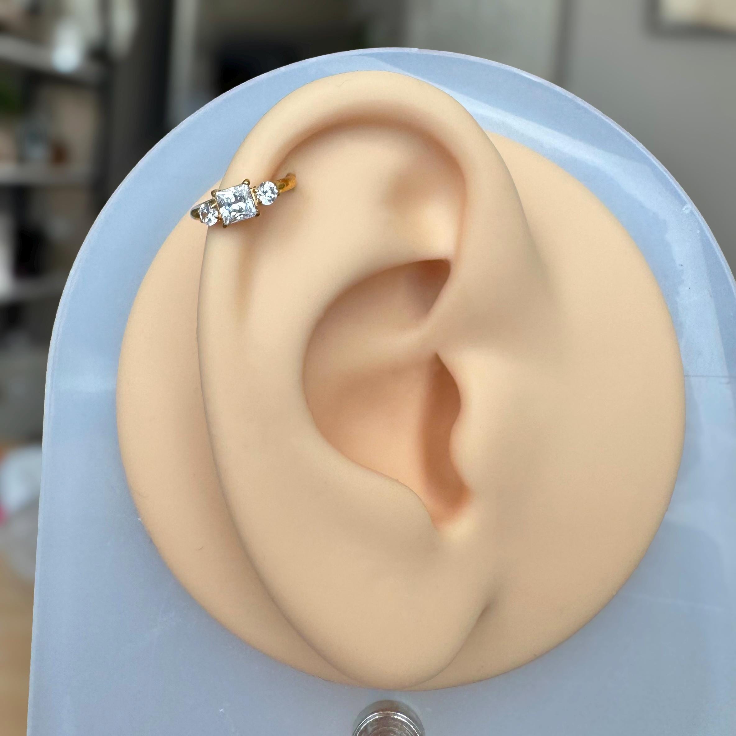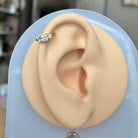 Enhance your conch piercing collection with this elegant clicker earring, crafted from high-quality implant-grade titanium and featuring a stunning cubic zirconia (CZ) design. This piece offers the perfect blend of durability, comfort, and sparkle, making it an ideal choice for cartilage piercings, including helix, conch, and more.
