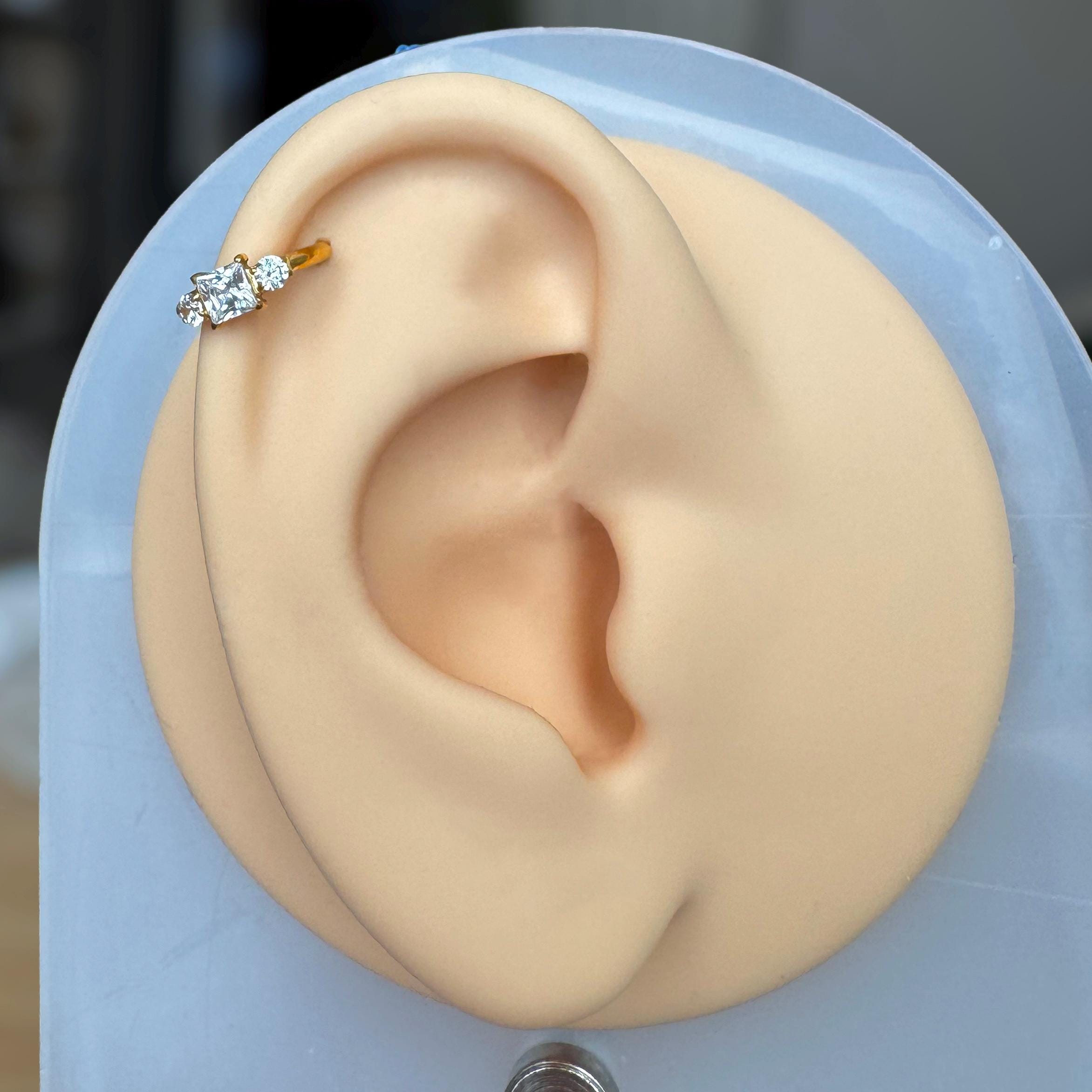 Enhance your conch piercing collection with this elegant clicker earring, crafted from high-quality implant-grade titanium and featuring a stunning cubic zirconia (CZ) design. This piece offers the perfect blend of durability, comfort, and sparkle, making it an ideal choice for cartilage piercings, including helix, conch, and more.