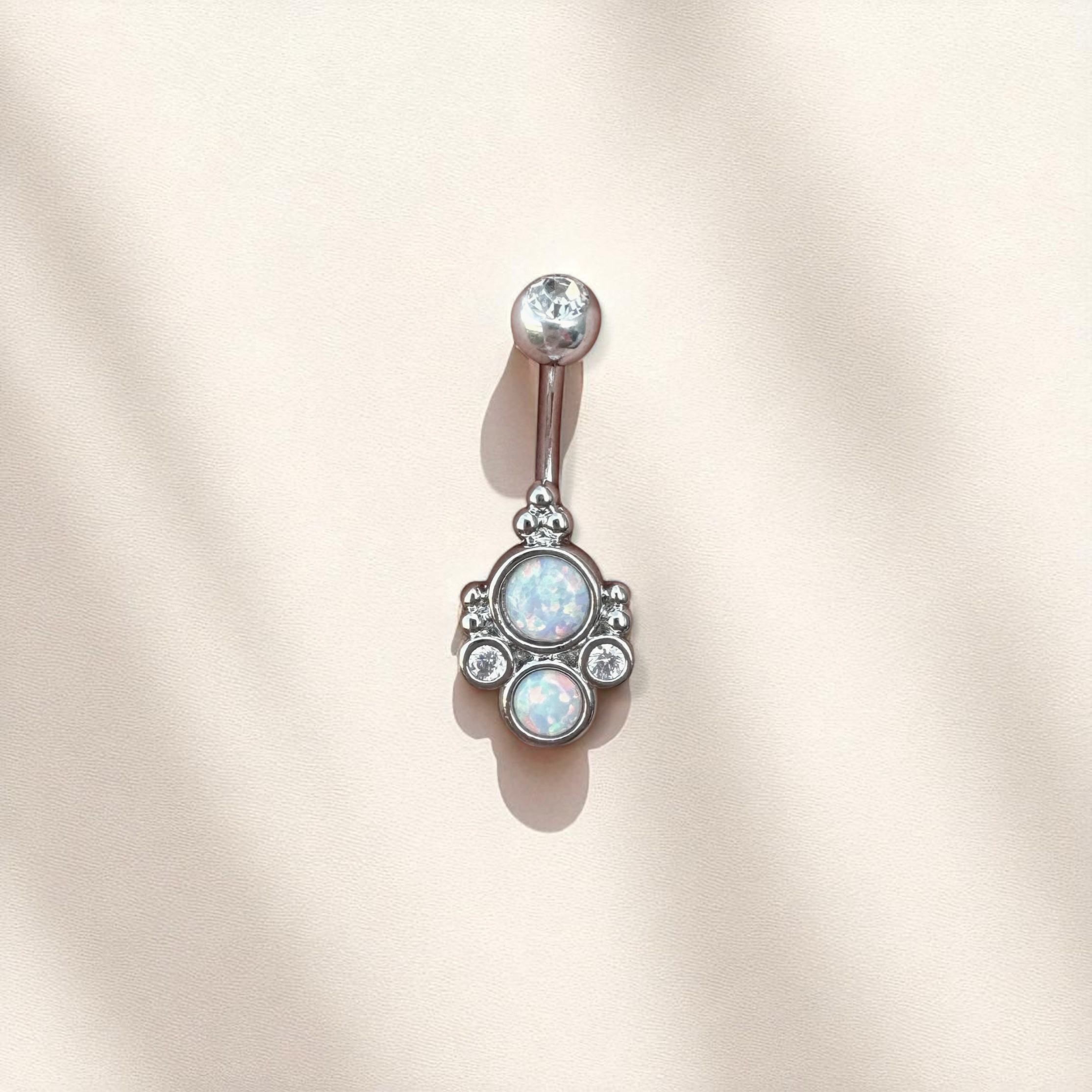 The rich combination of silver and the deep, mesmerizing tones of the faux opal creates a timeless belly button piercing that will turn heads wherever you go. For those who love a blend of classic beauty with a modern twist, this silver navel ring is the perfect addition to your navel jewelry collection. Drop jaws with this elegant, opal-inspired piece.