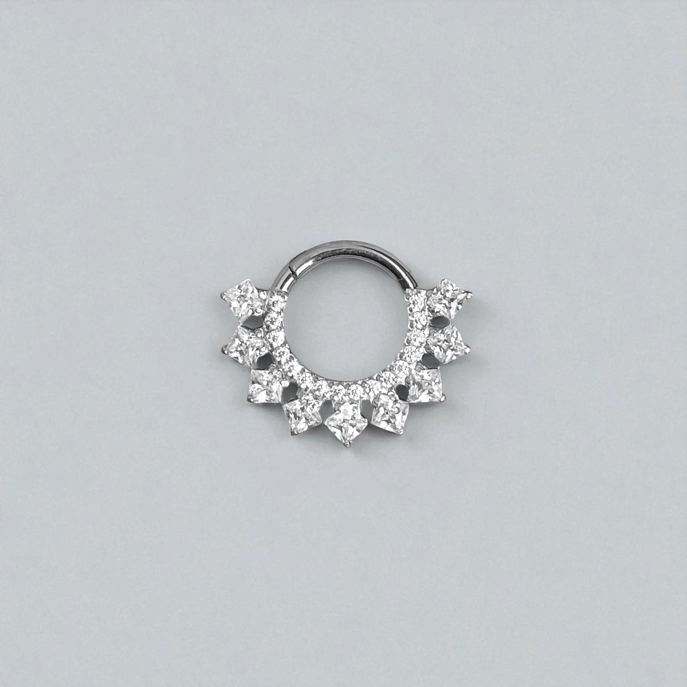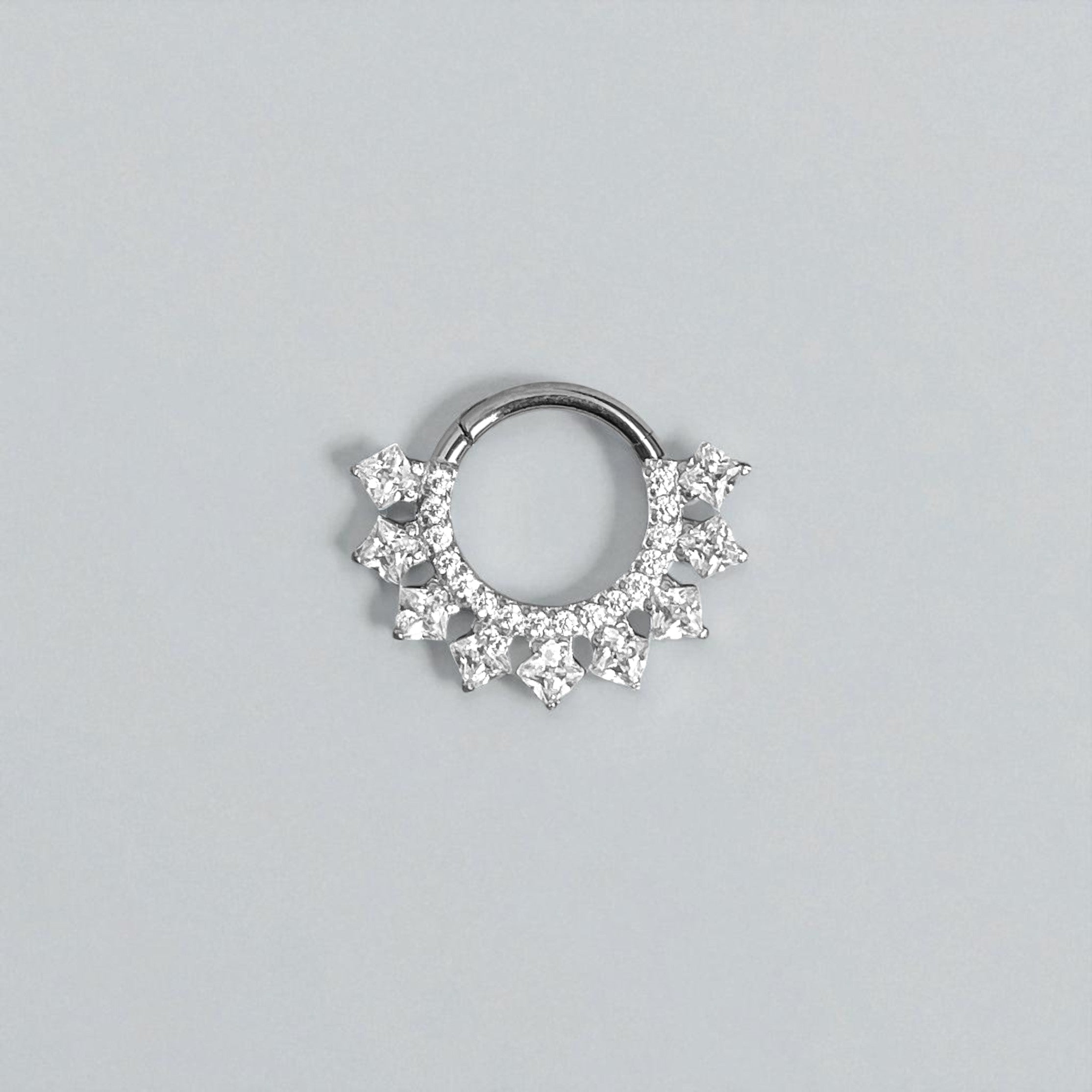 This piercing is made of implant-grade titanium in a beautiful sunburst design. Piercing "clicks" into place. Super dainty minimalist look - drop jaws with this body jewelry!