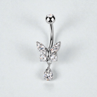 Bring a whimsical sparkle to your style with this CZ butterfly belly button ring, designed with gorgeous wings and a shimmering teardrop dangle. Made from surgical steel, this navel ring combines elegance and strength, offering both comfort and brilliance.