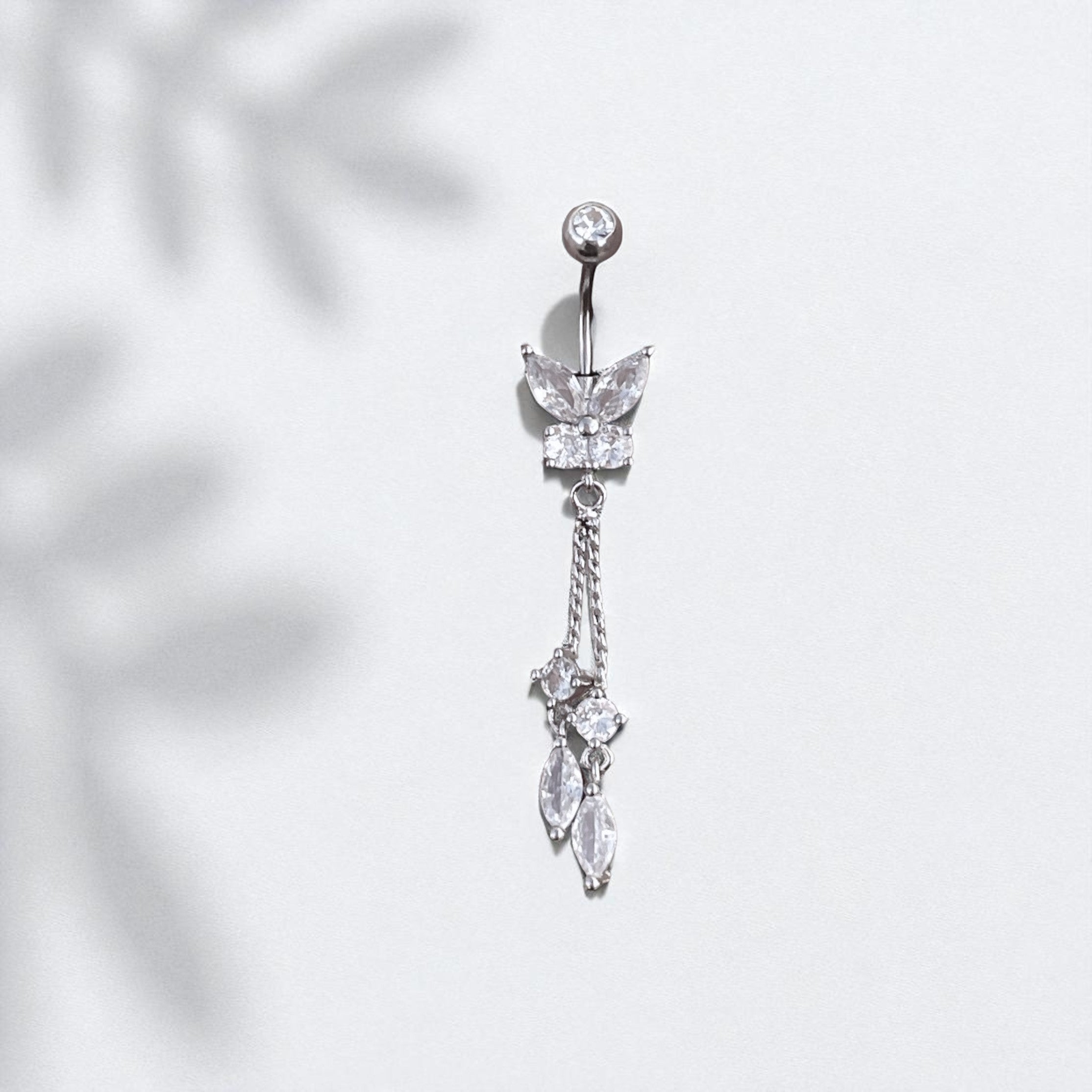 Elevate your look with the timeless beauty of the butterfly and let your style take flight with this stunning piece of navel jewelry.