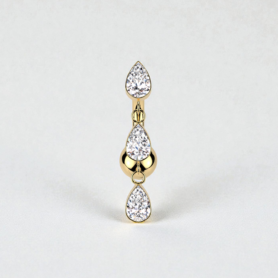 Featuring a delicate triple teardrop crystal motif that dangles gracefully, it offers a subtle sparkle perfect for any occasion. Lightweight, durable, and classy, this belly button piercing is practical for everyday wear while adding a touch of sophistication to your look.