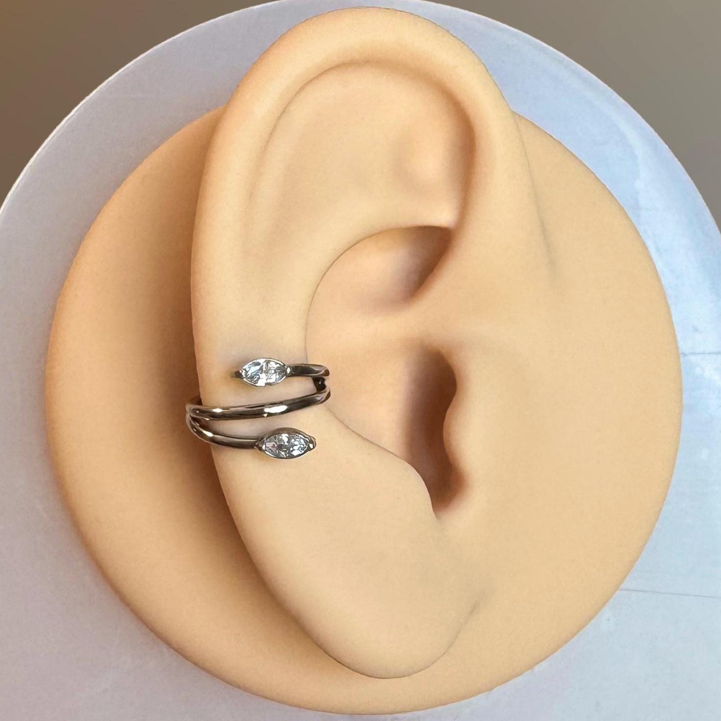 Transform your conch piercing with our vine wrap-around designed conch earring, a stunning piece that combines artistry with functionality. Crafted from high-quality 316L surgical steel, this 16G clicker earring ensures both durability and comfort. Available in three exquisite finishes – silver, gold, and rose gold – it allows you to choose the perfect hue to complement your style.