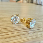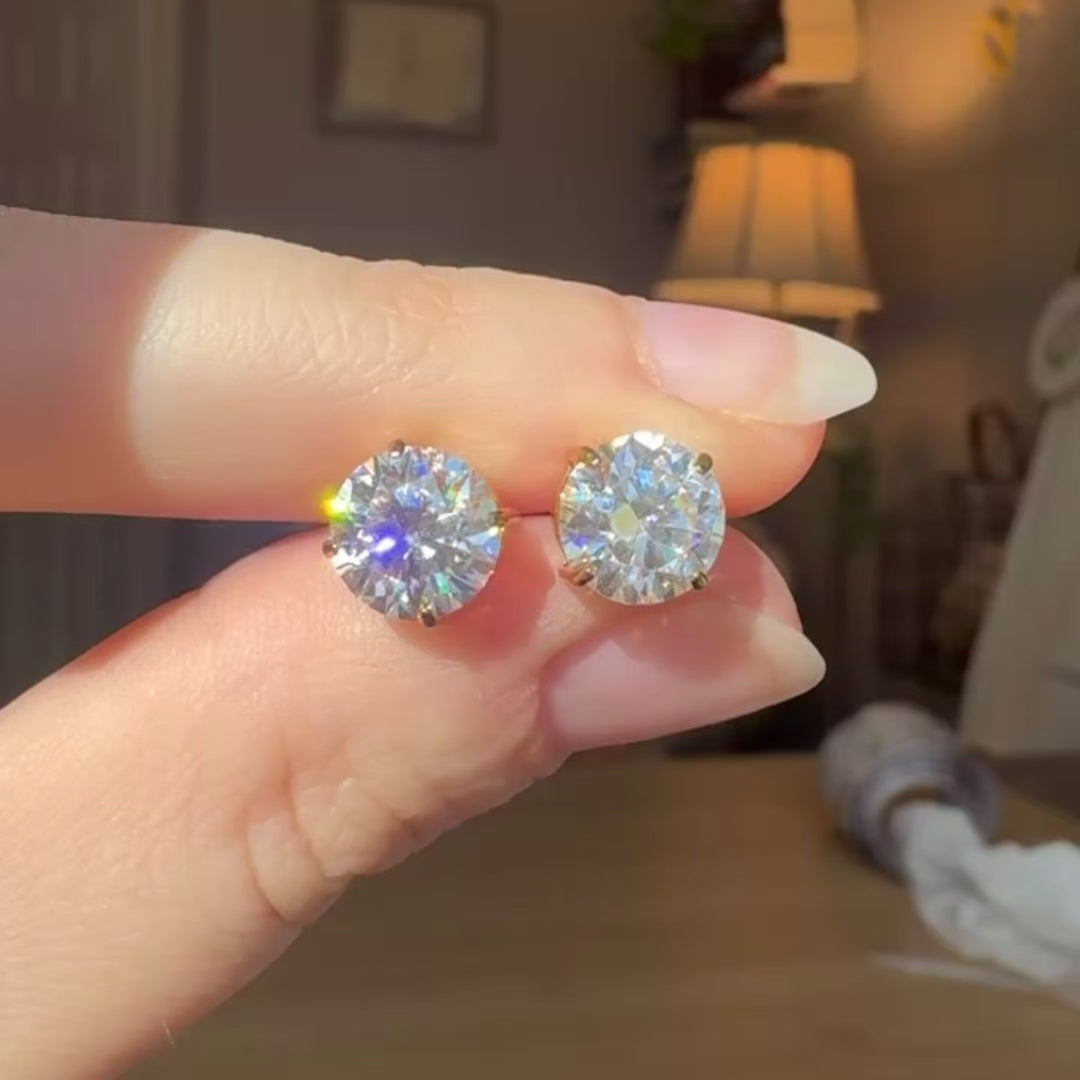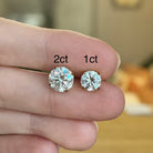 Each moissanite is hand-selected in D color, the highest color grade, for a pure, colorless sparkle that rivals top-tier diamonds. With VVS clarity, every stone is virtually flawless, reflecting light with unmatched fire and brilliance. Available in two sizes—1ct per stud or 2ct per stud—these earrings offer the perfect balance of timeless sophistication and lasting comfort.